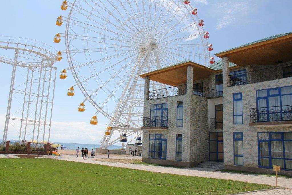 У пансионата имеется большой протяженный пляж со множеством развлечений – водные мотоциклы, бананы, катамараны и лодки, аквапарк с горками, единственные на побережье колесо обозрения и американские горки. В 2016 году здесь построены самые крутые водные горки!
